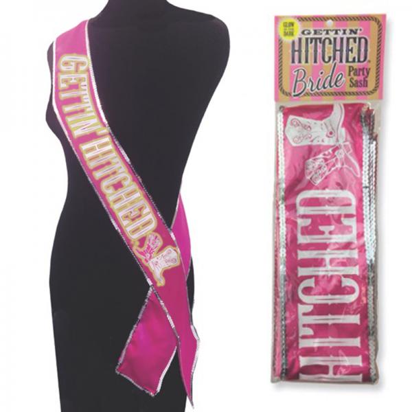 Glow in the dark 6 feet sash announces that the wearer is Getting Hitched.