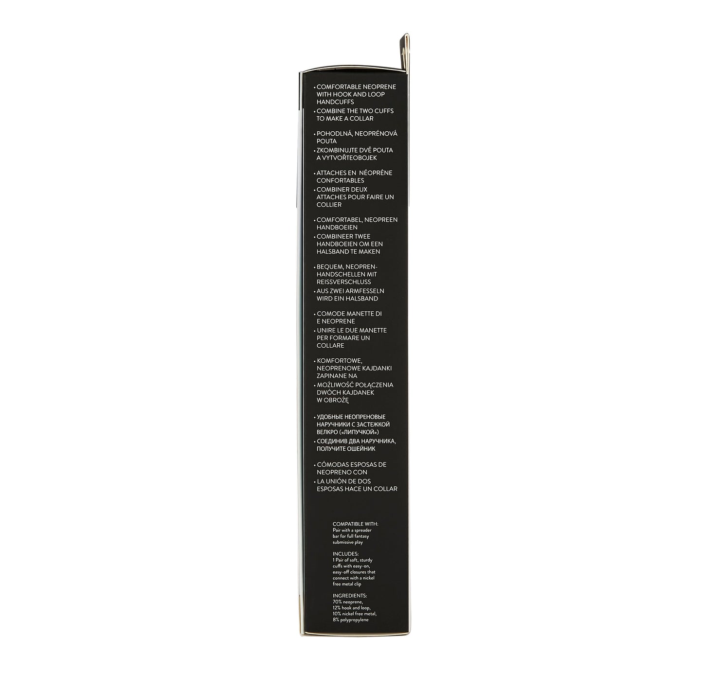 Entwine and bind as you see fit with these comfortable neoprene cuffs, ready to engage in versatile bondage play. These essential restraints are made with a strong, but soft material to keep those tender wrists and ankles safe, yet securely latched in the heat of the moment. The closures allow for easy on, easy off bondage play. Clasp them together or separate them for more creative use.